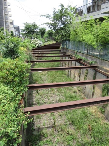 倚在住宅旁的過往河道,只剩下雜草與骨架